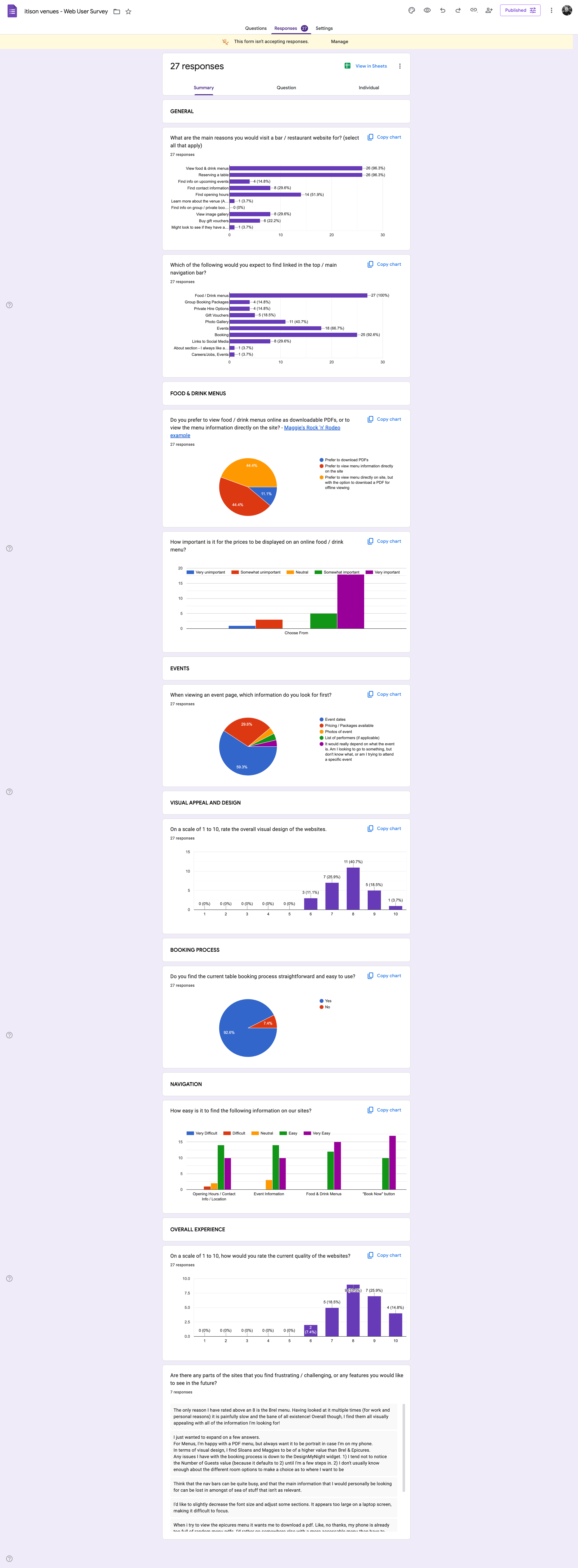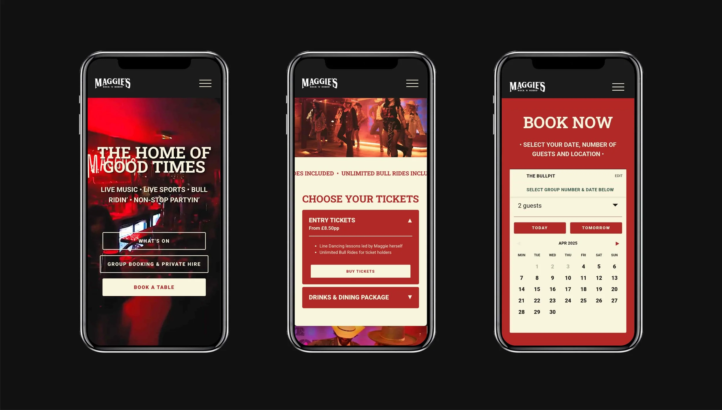 Bookings are handled through Design My Night, which provides an embedded widget. While functional, the default widget felt visually disconnected from the site and offered limited customisation.